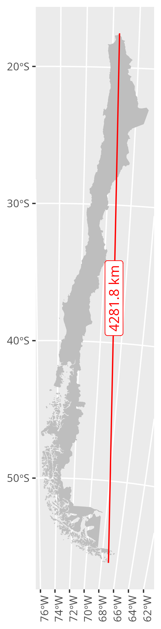 Just one line displaying the longest span for continental Chile.