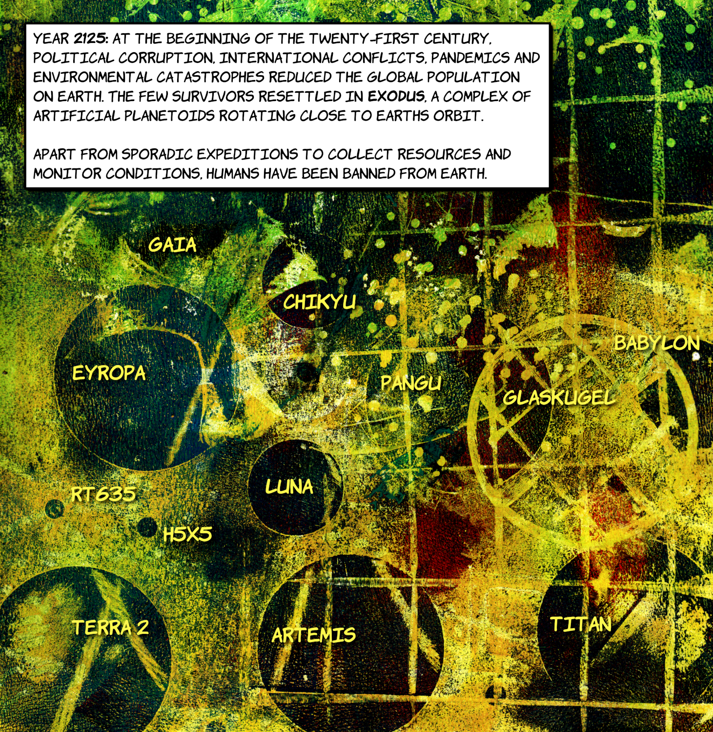 I gave an artistic piece of work (a Gelli plate print) a futuristic look for a kind of worst-case scenario.